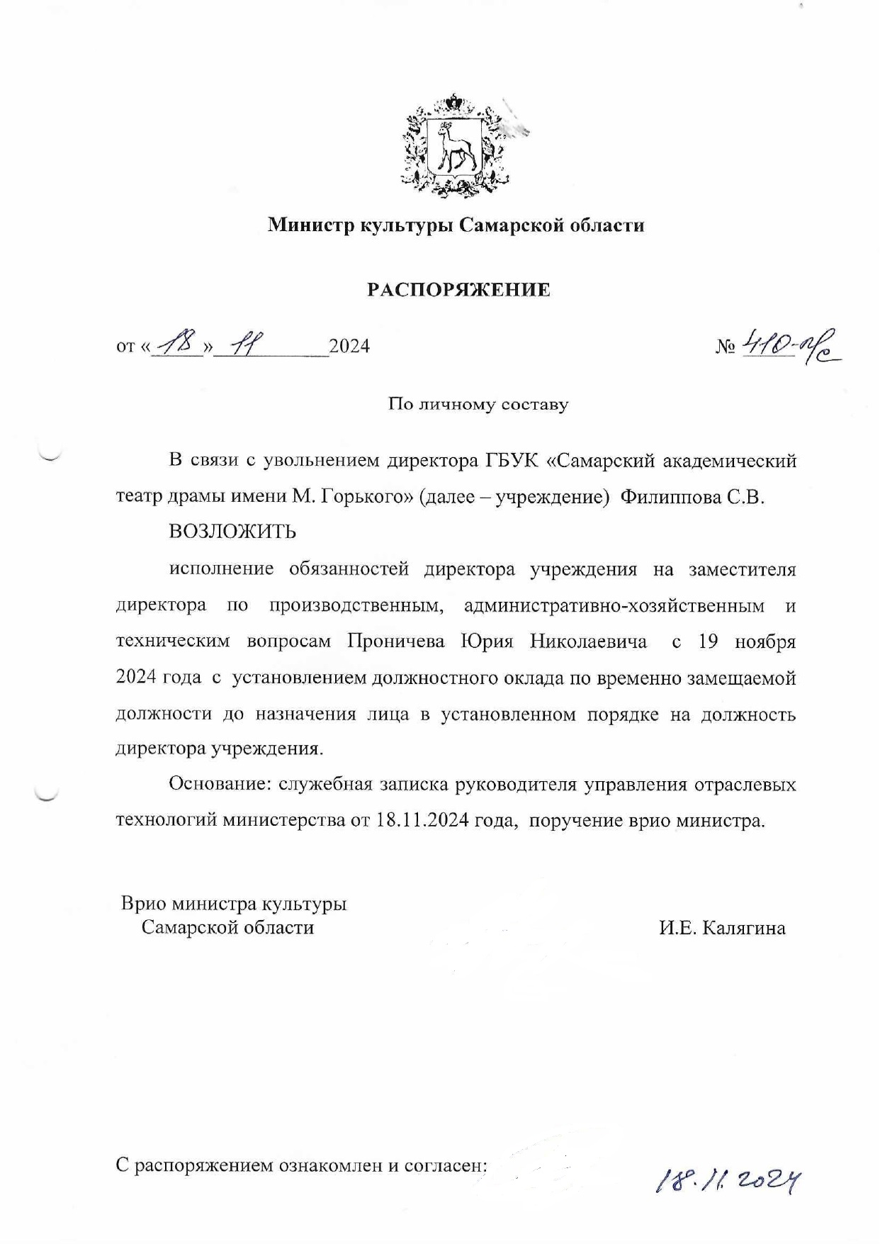 Приказ о проведении Большого театрального фестиваля